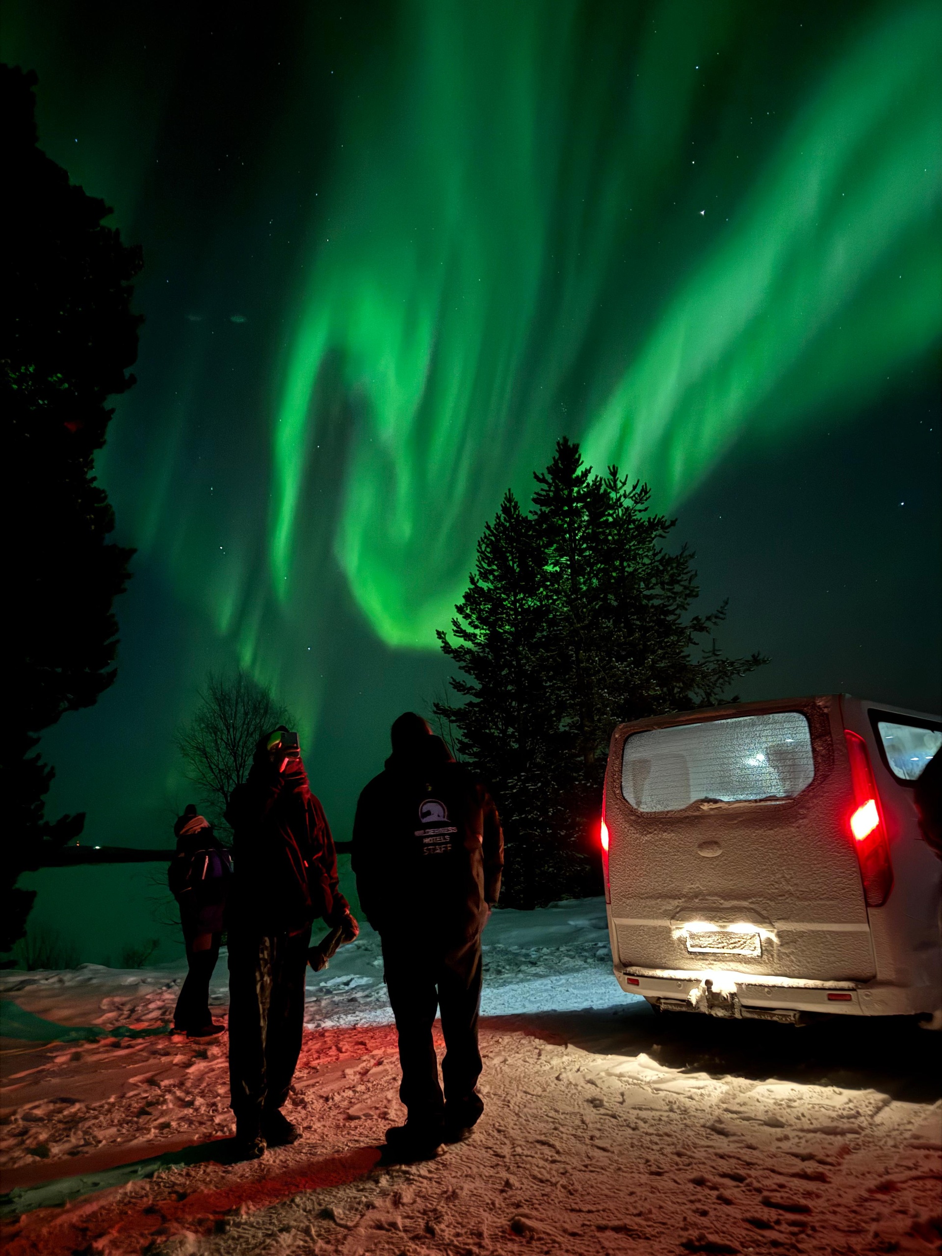 Ready for an exciting adventure? Join us for an Aurora car trip to hunt the Northern Lights! We’ll set off in search of the Auroras, heading to our favorite spots if the weather is good. If the skies aren’t clear, we’ll drive further out to find the best viewing conditions. During the trip, our guide will serve warm drinks and snacks. This relaxing trip is suitable for everyone.