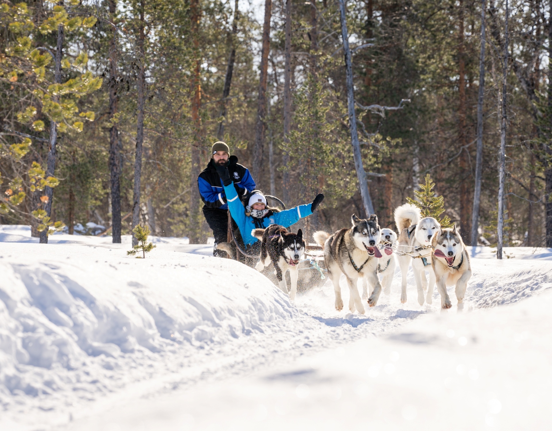 This adventure will take you through stunning lakes and forests. Before we set off, you’ll learn how to handle the sled. Feel the excitement of the huskies as they get ready, and then enjoy the serene silence as they pull your sled through the beautiful winter scenery. Each sled is set up for two guests, with one mushing and the other seated in the sleigh. Halfway